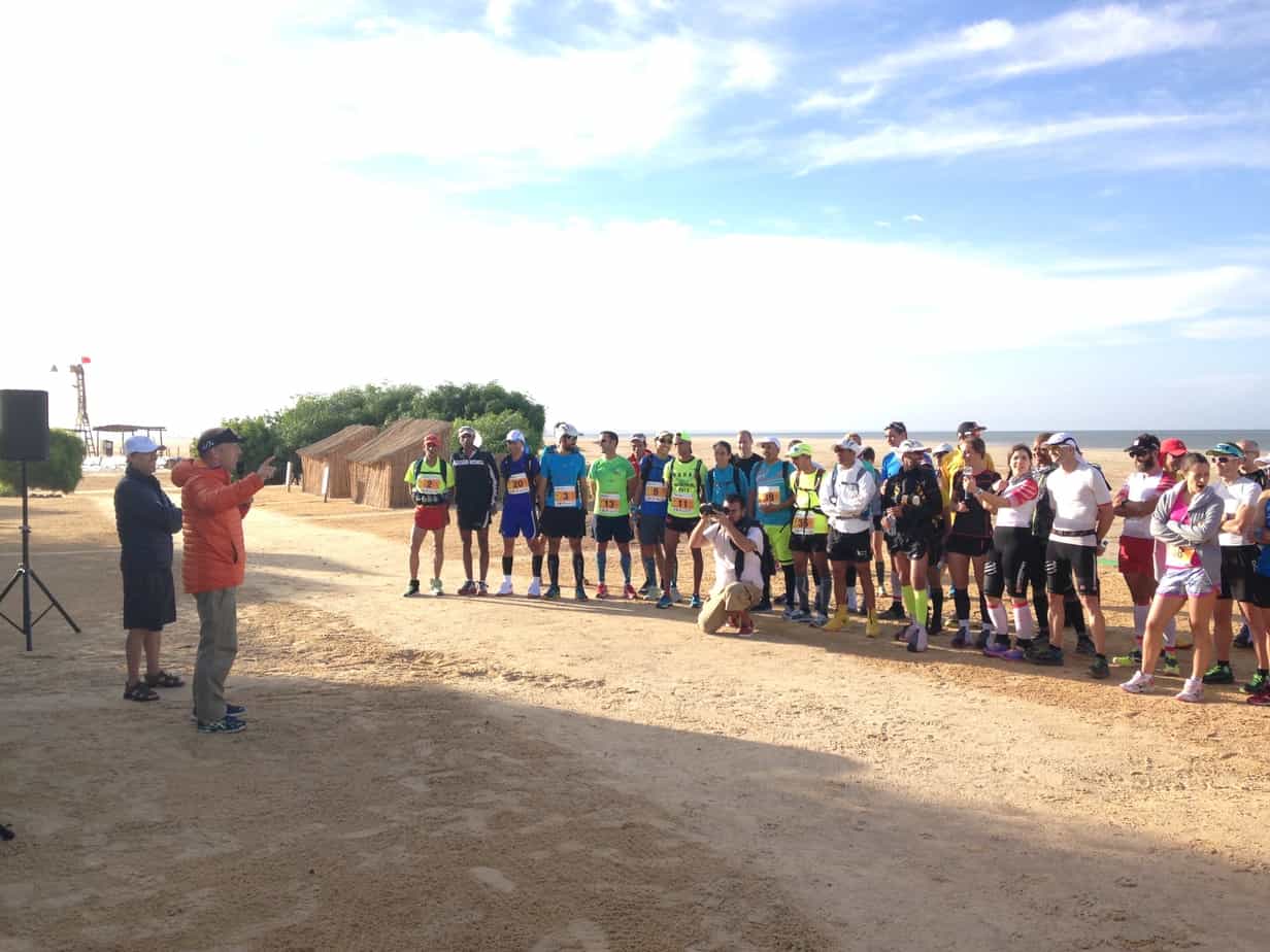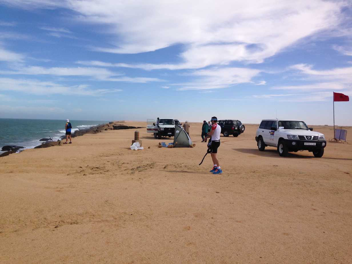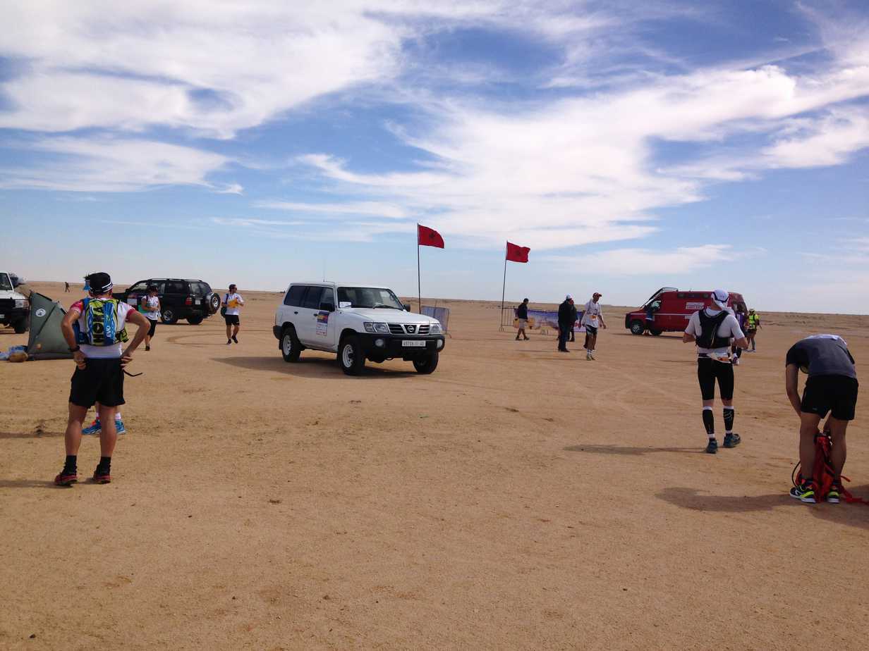 Sur notre lieu de rendez-vous, nous sommes prêts à en découdre avec le désert marocain. Le départ lancé, j’ai une nouvelle fois la chance d’évoluer avec le groupe des élites, dans lequel Vincent Viet se positionne en bonne place. Mais leur départ lent ne dure pas et je les vois s’envoler devant moi en quelques foulées.