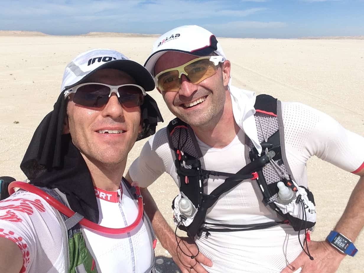 A mi-parcours du DUST, l’expérience est mitigée. La première étape a été difficile; j’étais confronté pour la première fois à la chaleur et au sable mou, difficultés renforcées par un vent de face et des balises souvent difficiles à localiser. Je terminais en compagnie de mon pote Fabrice, exæquo en 14ème place (sur 33 participants), après 3h44 de course.
