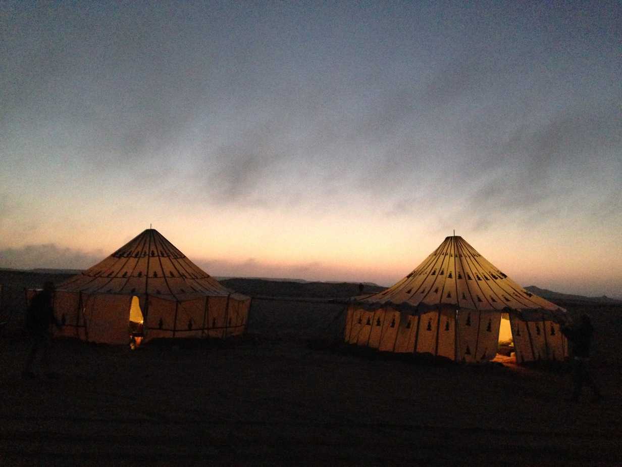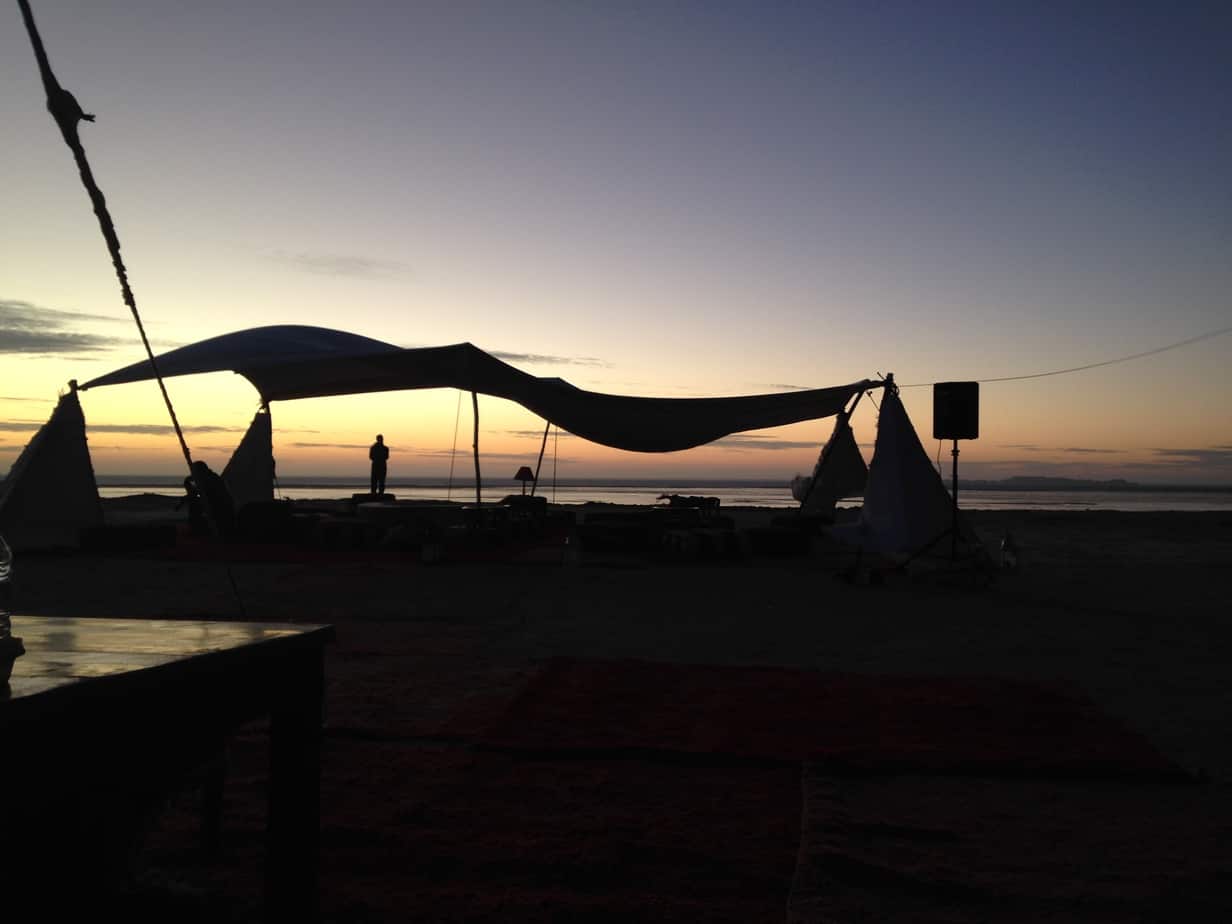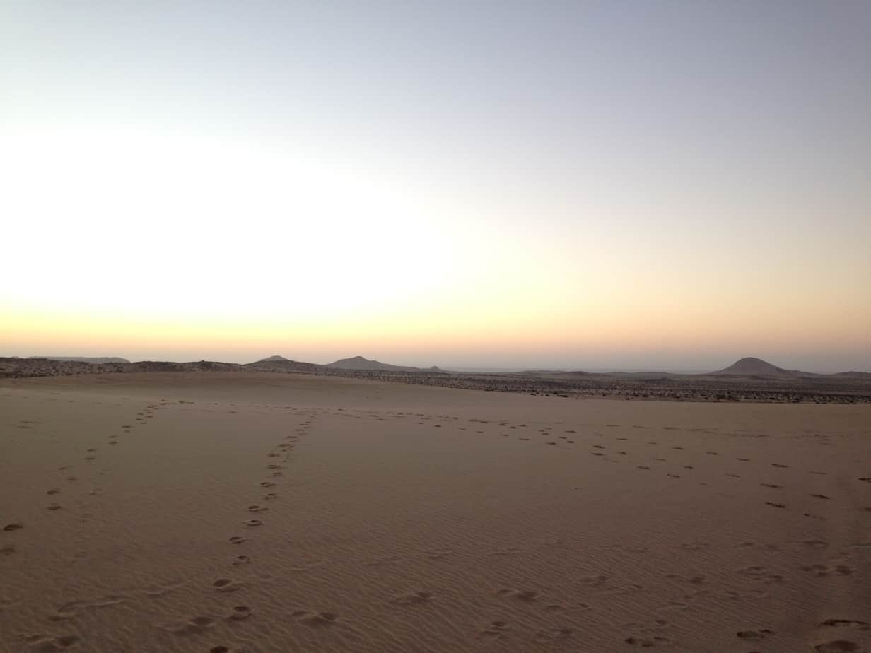 Réveillés à 6h par Bruno, déjà branché à la sono (c’est sûr, il dort avec son micro!), nous prenons le petit déjeuner puis finalisons nos bagages. Cette dernière étape nous fait quitter définitivement le campement; l’étape nous amène directement à l’hôtel Dakhla Attitude.