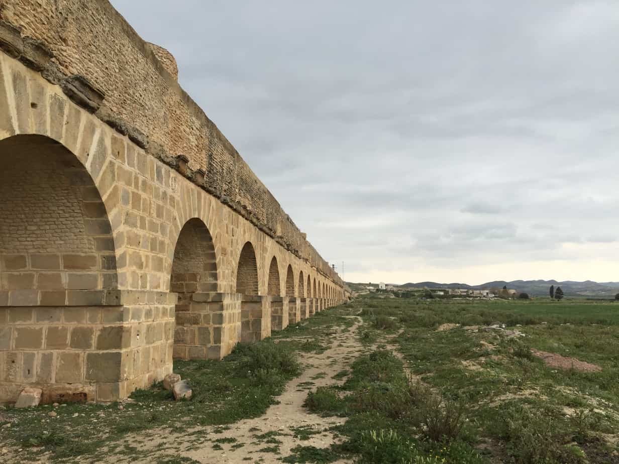 Le lendemain, après une bonne nuit de sommeil et un réveil matinal par un footing sr la plage, nous prenons notre petit-déjeuner dans un hôtel presque inoccupé. Puis, nous nous dirigeons vers un autre lieu riche d’histoire: Oudhna. La météo est un peu capricieuse, et le vent souffle (il paraît que c’est la tempête en France). Le site, situé à une vingtaine de kilomètres de Tunis, est impressionnant. Mais le vent nous rend fou. D’un commun accord, après le déjeuner, nous rentrerons à l’hôtel. Nous passons tout de même par l’aqueduc de Zaghouan avant de nous diriger vers La Marsa, pour le retrait des dossards des Foulées du Mégara.