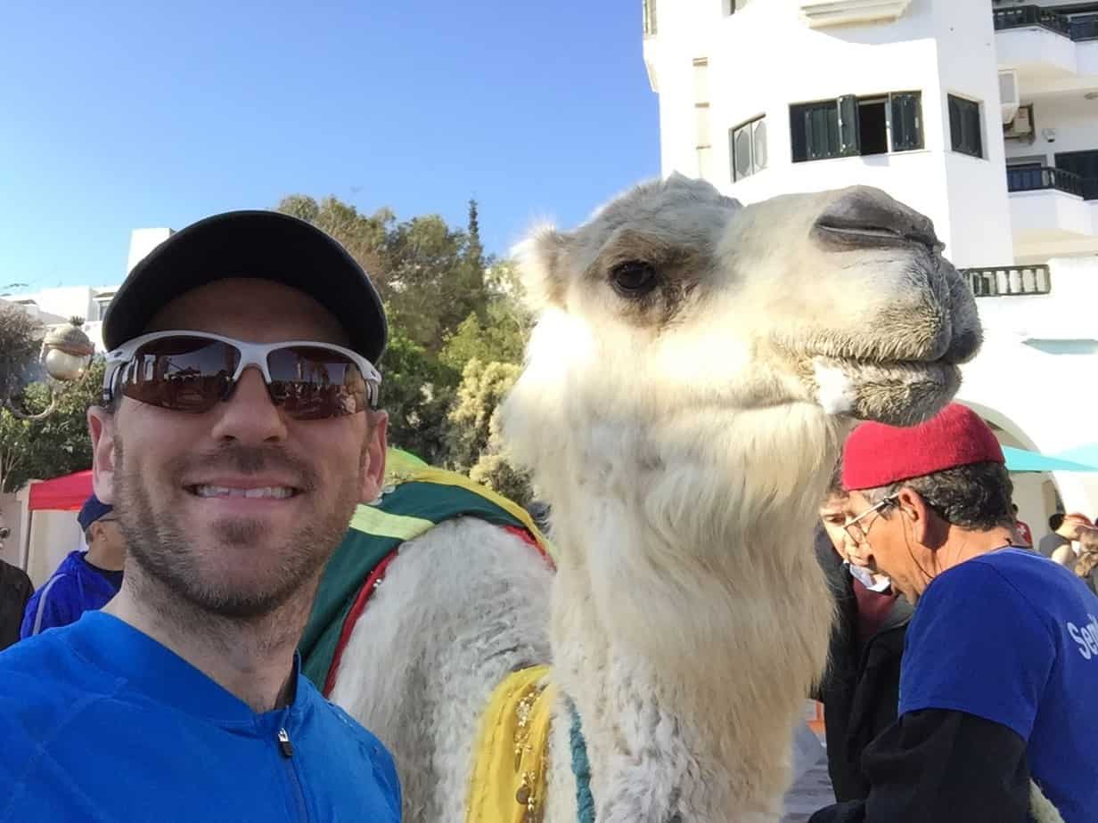 Nous arrivons à La Marsa 1h avant le départ. Le monde est déjà là. Je discute un peu avec les deux français de Chronosphère qui s’occupent du chronométrage de la course. Puis je fais connaissance avec Fethia, une jolie dromadaire qui prend également le départ de la course (et uniquement le départ).