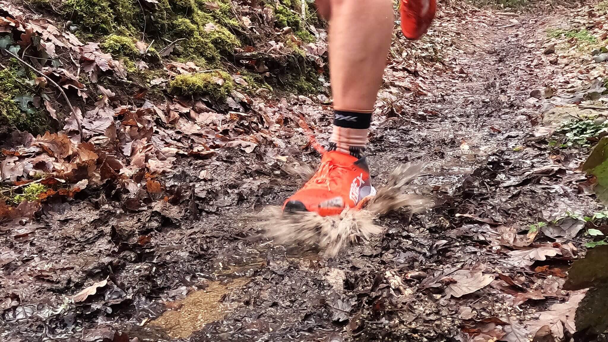 Sur le terrain, j’ai traversé flaques, herbe détrempée, sentiers boueux. Le pied reste au sec. Et ça change tout mentalement : tu restes concentré sur ta foulée, pas sur l’inconfort.