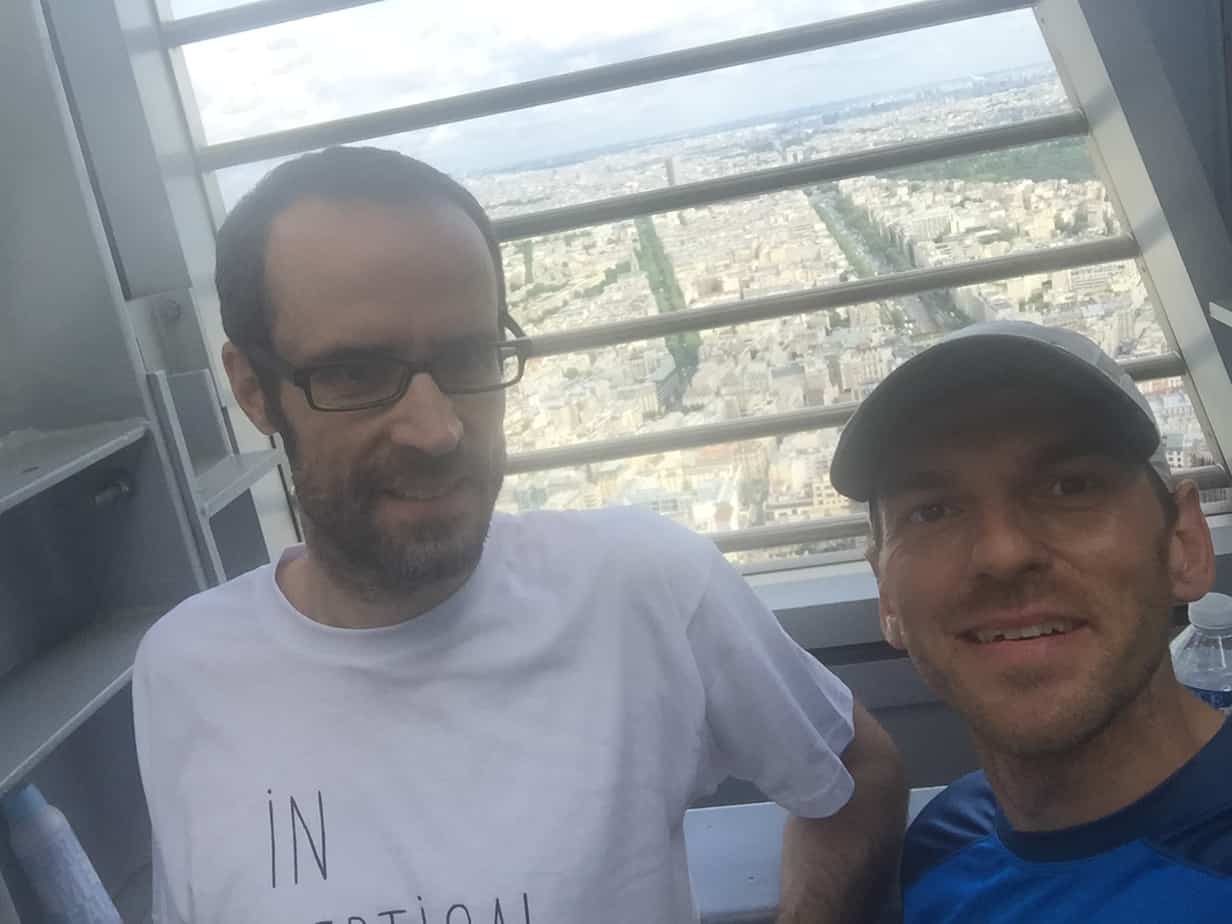 Je retrouve Philippe sur l’esplanade de La Défense. Nous retirons notre dossard puis attendons dans le sas de départ, tout en nous échauffant. Top départ. Je monte les 48 étages à fond, me faisant doubler par Philippe à mi-parcours. Je termine en 6min48, 3 secondes derrière Philippe. On profite du paysage. Je crache mes poumons. On redescend par l’ascenseur. 91000€ sont récoltés à l’occasion pour l’association Pl4y Association.